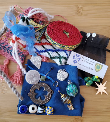 This is a bit of an odd post - I have been updating my wiki and wanted to show some of my favourite things that I have collected and/or been gifted along the way. There was no real room for explanation, so I thought I'd put them out here. My very first token was from Fjordland Rising in 2012 (give or take a year). Due to some life circumstances, it was a few more years before I actually found the local SCA again, this time through a friend. This reminds me to never give up. My newcomer beads were given at Baroness' Inspiration, which would have been November 2018. This was my first official event. These remind me that everyone starts as a newcomer. My mousetail came from my second event, probably February Investiture, where I was volunteering for gate and I met the loveliest person who was a nalbinder. I asked how the tail of her very cute mouse was made, and she showed me. I actually laughed and clapped like a little kid seeing a magic trick! This reminds me to be humble and ...